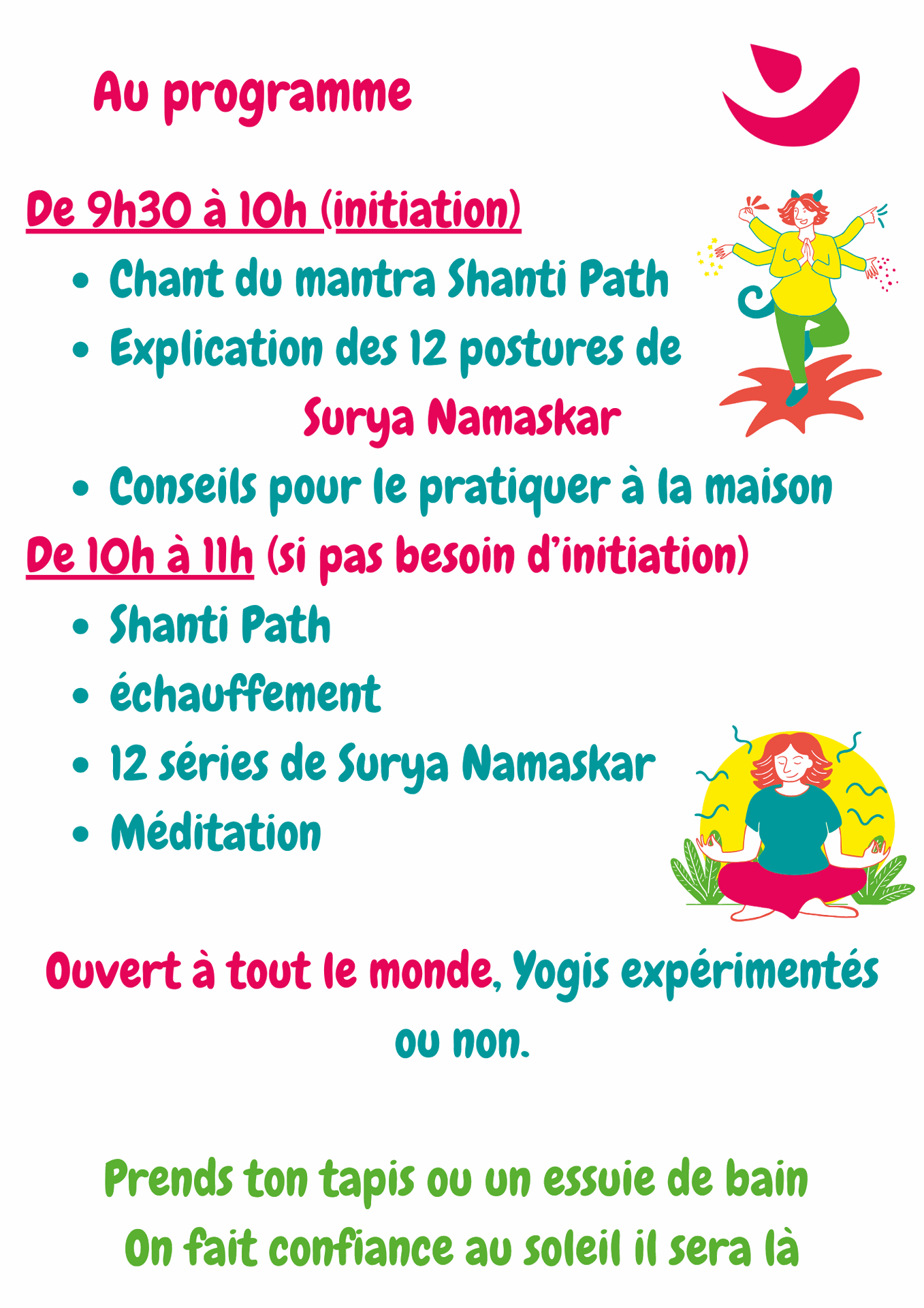 Rejoins-moi pour une initiation à la salutation au soleil suivie d'une petite méditation pour passer un bon dimanche. La Mystery Machine sera garée près des terrains de tennis.